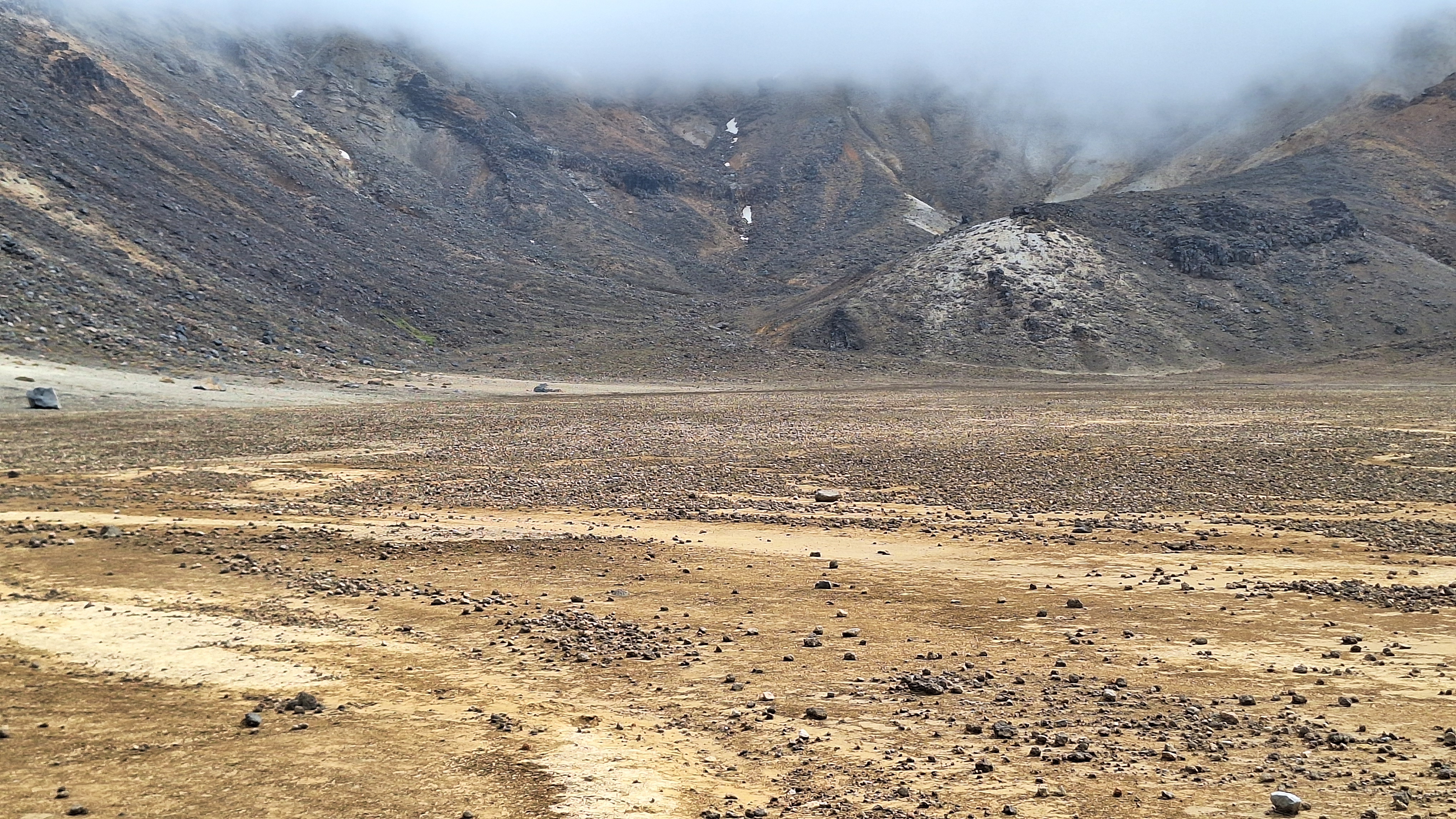 Our crossing of the Tongariro proved underwhelming. The heights we gained brought only thicker cloud and the harsh winds prevented us from taking in what little views did appear. As we queued on narrow boardwalks and cursed uphill congestion, as we stumbled along paths that crumbled beneath the footfall of so many boots, we wondered if the Crossing had become a victim of its own success. The novelty of walking across volcanic craters paled in comparison to the awe we’d felt upon first seeing that snow-capped triumvirate of mountains from the road. Huddled before the Emerald Lakes under the concealed summit of Mount Tongariro, lacerated by gnashing gales as I choked down a hurried sandwich, my thoughts returned to the kuia at the bottom of the trail. She had no need to summit the saddle in order to understand its value, her respect for the landscape founded more upon what was sacred than what was spectacular. I couldn’t help but envy that depth of feeling, a depth I had failed to muster on what was supposed to be an awe-inspiring, once-in-a-lifetime hike.