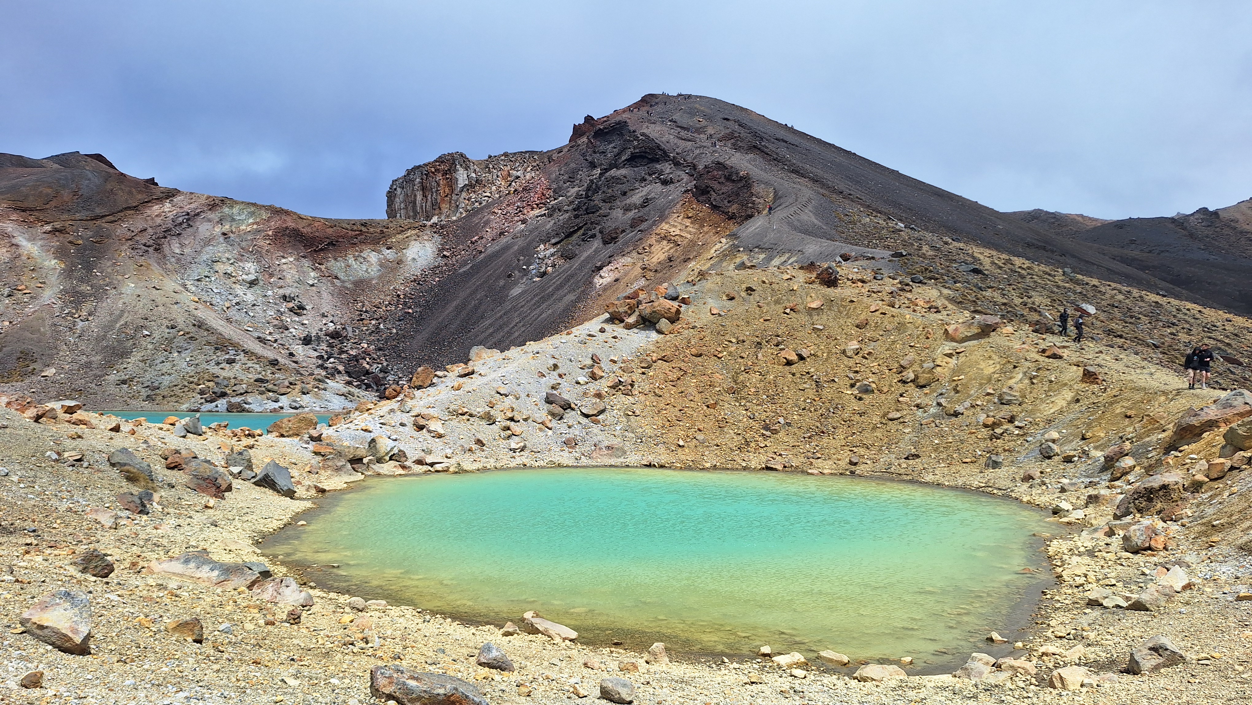 The local Māori hapū (sub-tribe) responded swiftly, declaring two rāhui (prohibitions): a decade-long ban on entering the affected land to encourage full regeneration, and a short-term ban on accessing the usually tourist-choked paths, including those of the ultra-popular Tongariro Crossing. The Crossing, winding between the volcanic cones of Mount Ngauruhoe and Mount Tongariro, is considered New Zealand’s best one-day trek, attracting up to 3000 hikers a day in peak season. Its popularity props up the local economy, with many employed by the flotilla of bus operators that transfer hordes of trampers to the beginning of the trail each morning. Steve was one of the few drivers operating that day, the day the rāhui on the path was to be lifted and we were scheduled to make the crossing ourselves.